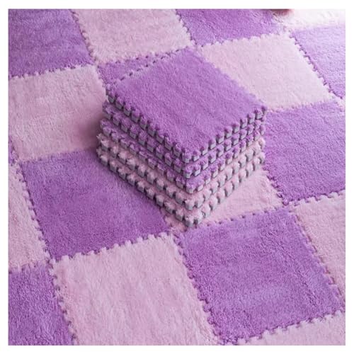 12pcs Carpet Squares Puzzle Floor Mat Arctic Fleece Interlocking Carpet Tiles Anti Slip EVI Foam Jigsaw Floor Tiles Build A Safe Area For Bedroom Playroom(Pink+Purple,50pcs)