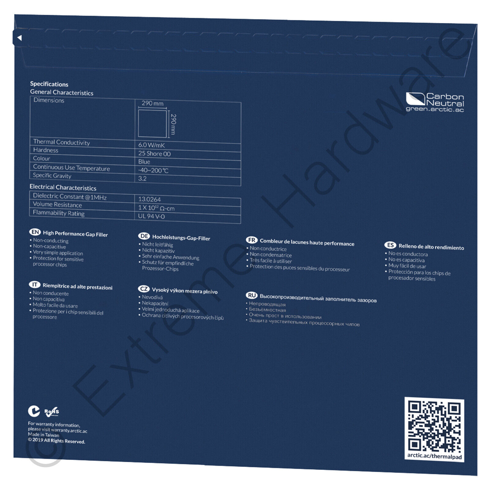 Arctic - Thermal Pad 290 x 290 x 1.0 mm Thermal Compound for All Coolers Efficient Thermal Conductivity Gap Filler Safe Handling Easy to Apply