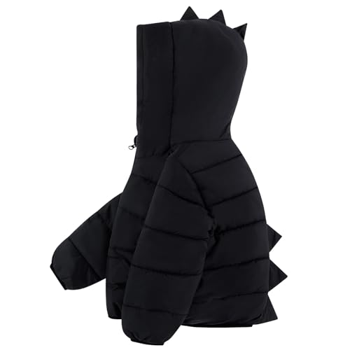 Kids4ever Toddler Baby Boys Girls Winter Coat Dinosaur Hooded Thermal Arctic Fleece Jacket Zipper Outerwear with Two Pockets 2-3 Years (3Y,Black)