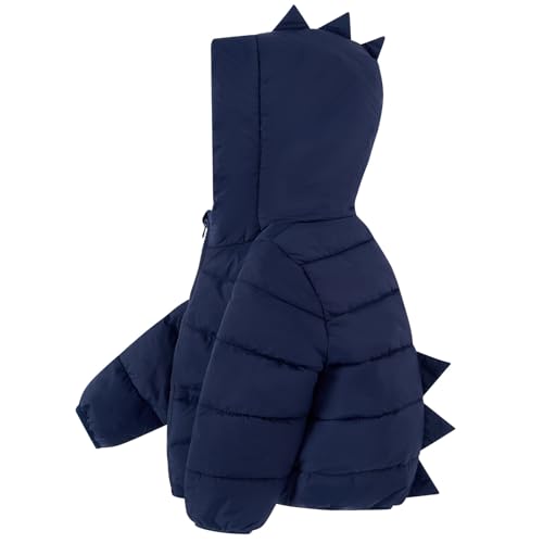 Kids4ever Toddler Winter Coat Baby Dinosaur Hooded Zipper Jacket with Thermal Arctic Fleece Lining,Perfect for Snow Play & Family Outings 1-2 Years (2Y,Navy Blue)