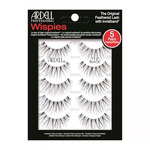 Ardell Multipack Wispies 113 False Eyelashes, Medium Volume, Long Length, Vegan Friendly, 5 Pairs (Pack of 1)