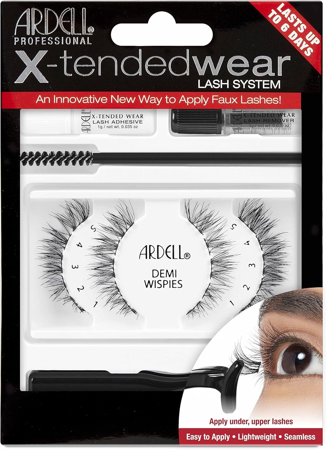 Ardell X-Tended Wear False Eyelashes, Demi Wispies Kit, 6 Day Wear, Adhesive in