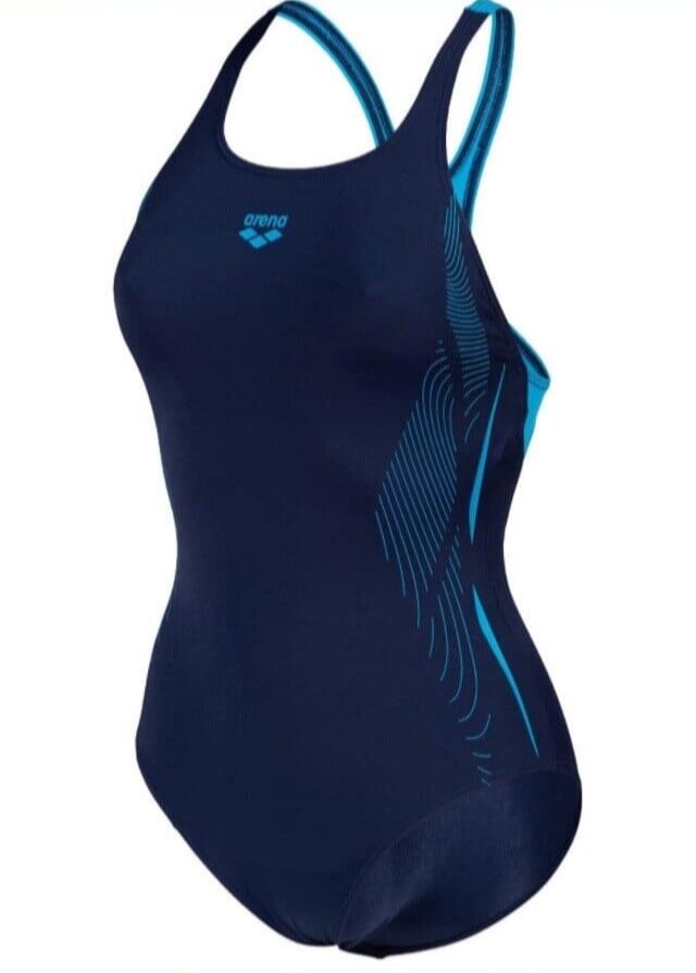 Arena Women's Swim Pro Back Graphic LB Swimsuit UK 36 Navy Turquoise One Piece