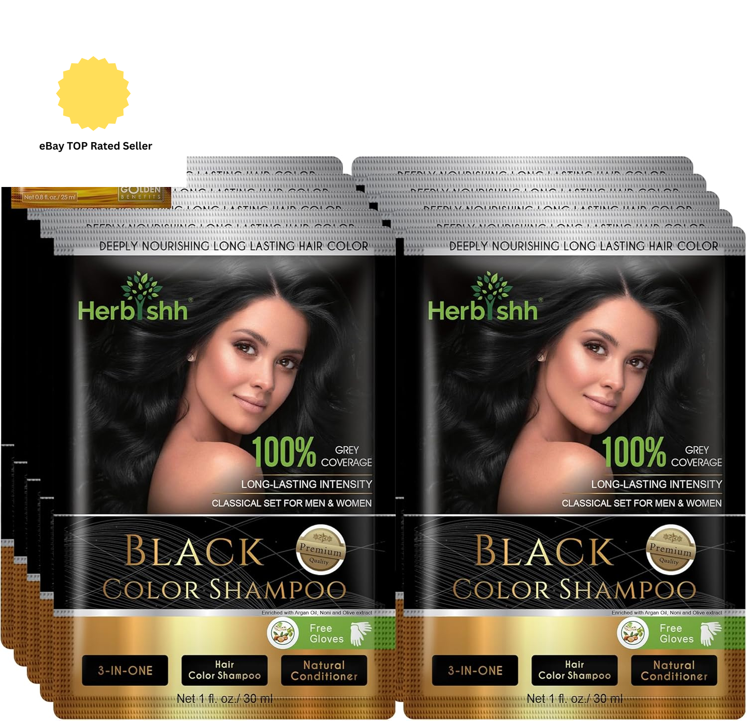 Herbishh Hair Color Shampoo for Gray Hair– Hair Dye Shampoo with Argan Hair Mask