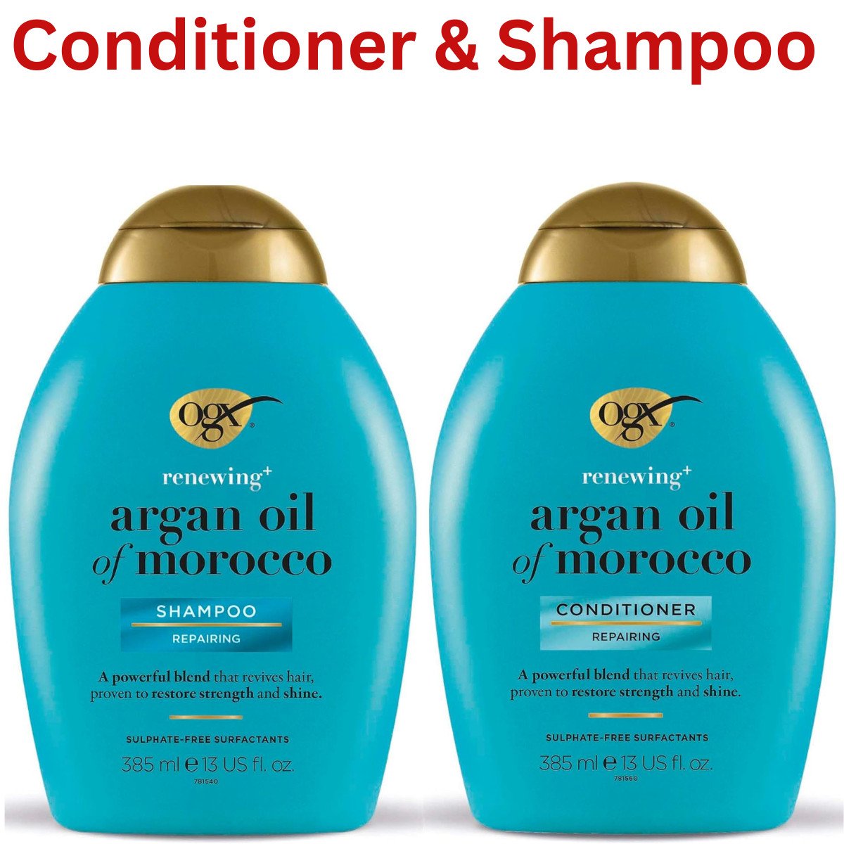 OGX Argan Oil of Morocco Sulfate Free Shampoo for Dry Hair, 385 ml & Hair Condi