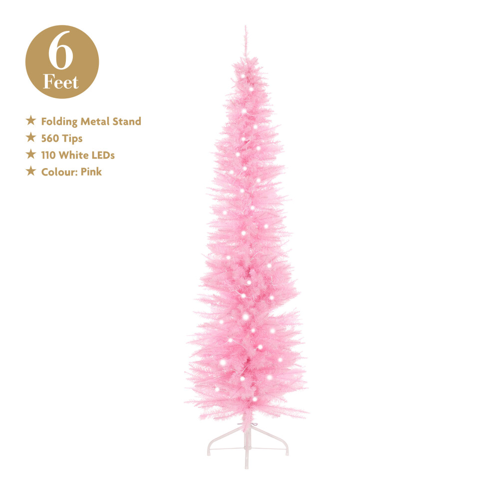 The Christmas Workshop 70870 6ft Pink Pre-Lit Slimline Christmas Tree