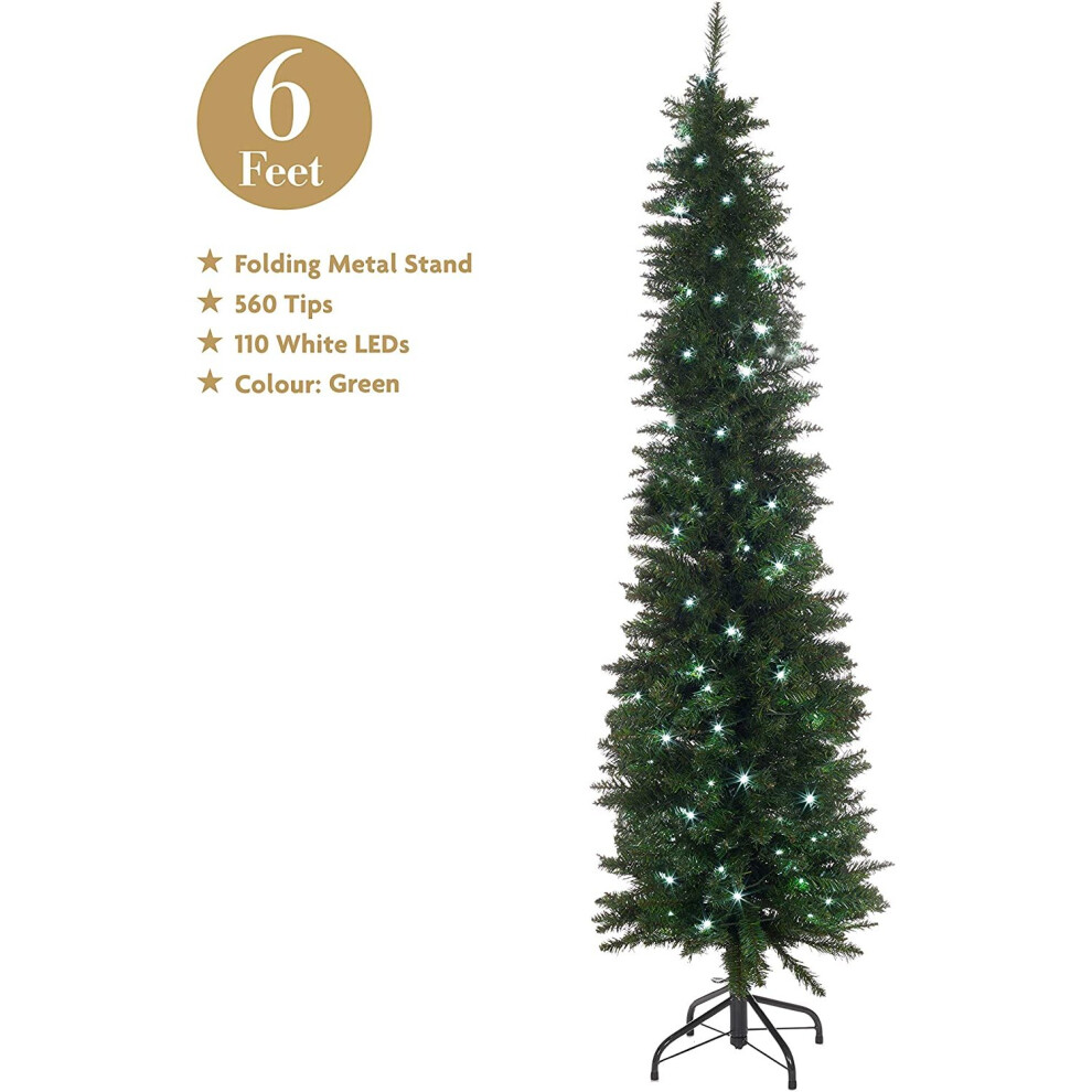 (6ft, Pre-lit) The Green Pencil Christmas Tree | 4ft-8ft | Unlit or Pre-lit | Christmas Tree World