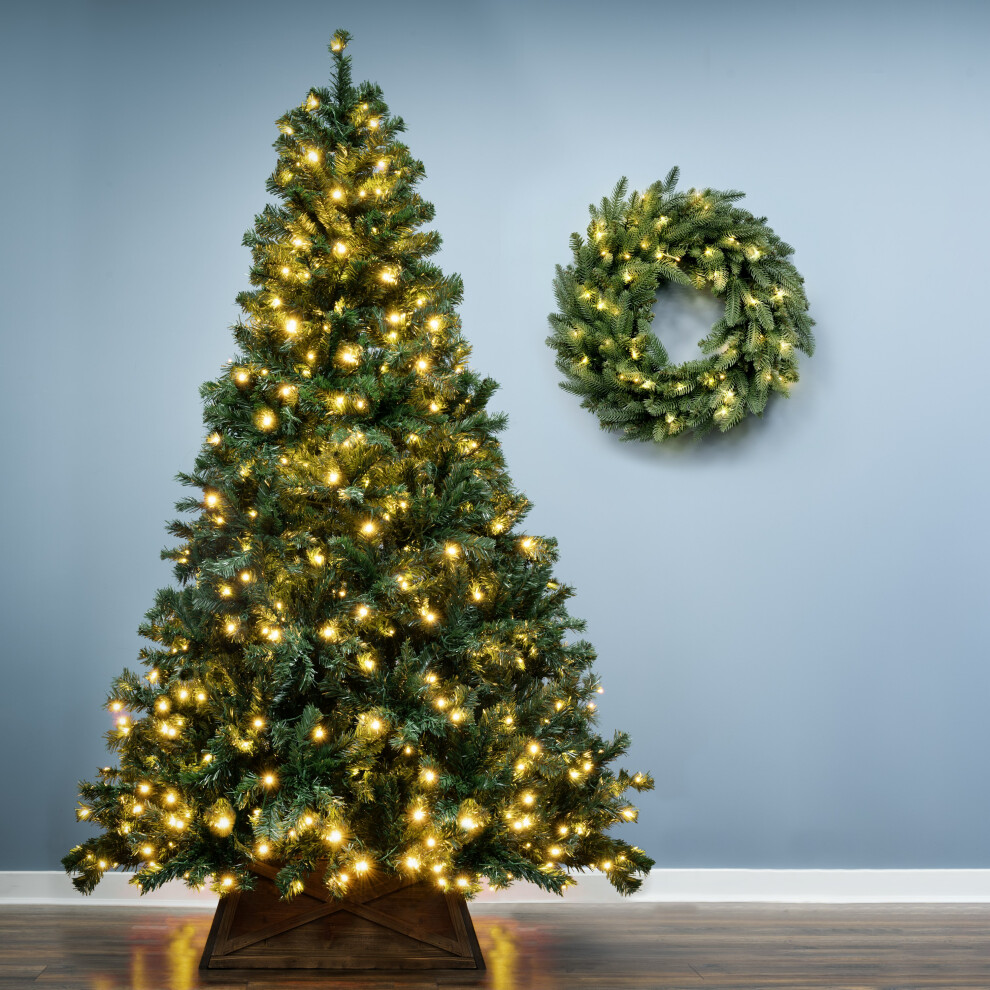 (8ft) Pre-lit PE/PVC Outdoor Pine Tree with warm white lights | Christmas Tree World