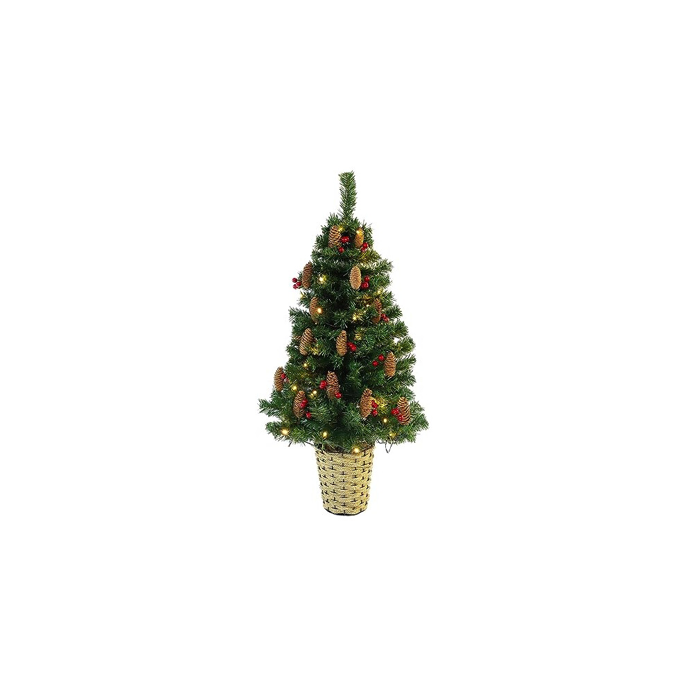 Christmas Concepts 3ft (90cm) Green Pre Lit Wall Mounted Christmas Tree With Cones And Red Berries