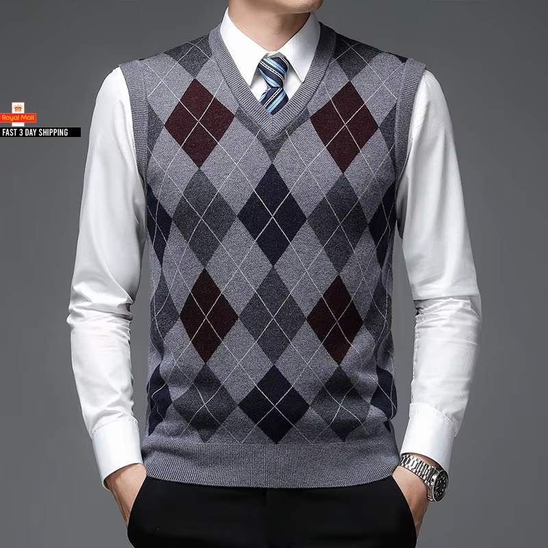 Autum Argyle Pullover Diamond Sweater V Neck Knit Vest Men 6% Wool Sleeveless Casual Men Clothing