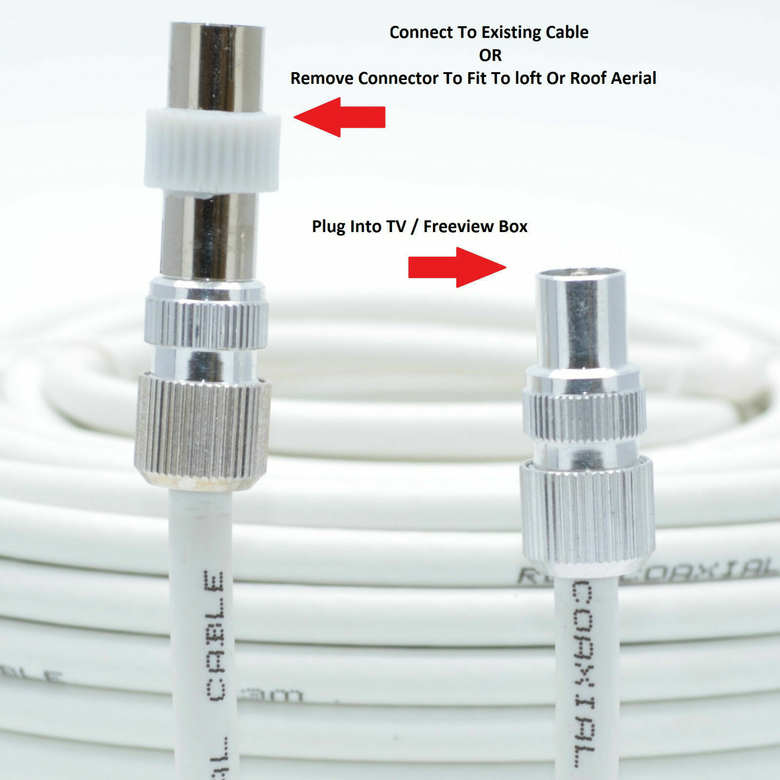 TV Aerial Ariel Cable Coaxial Extension Lead Freesat Recorder Male to Male Plug