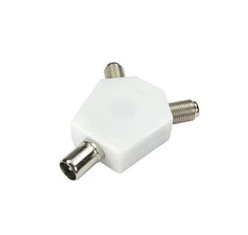 2 Way Coax TV AERIAL Cable T Splitter 1 PLUG to 2 SOCKET Ariel Adapter PAL White