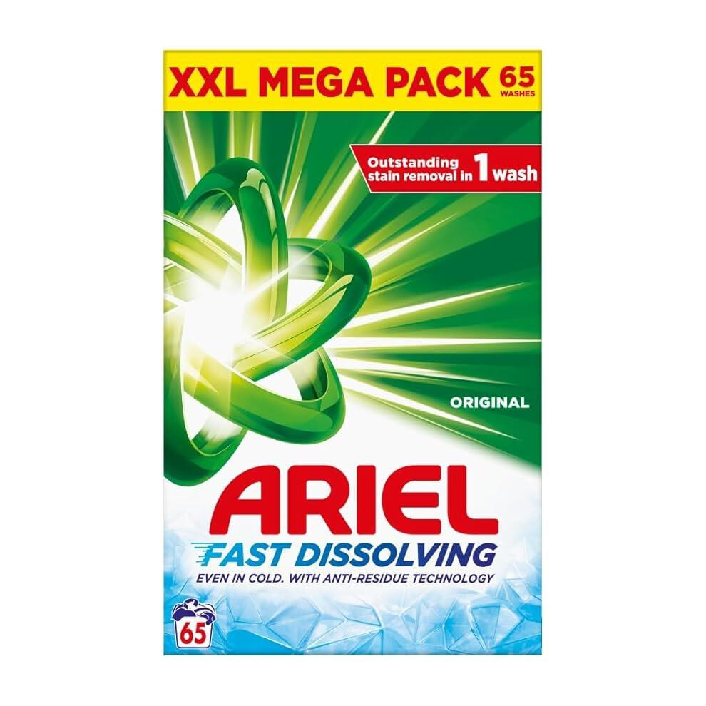 Ariel Original Washing Powder - 65 Washes: Brilliant Whites & Colors, Superior Stain Removal, Low-Temp Deep Cleaning