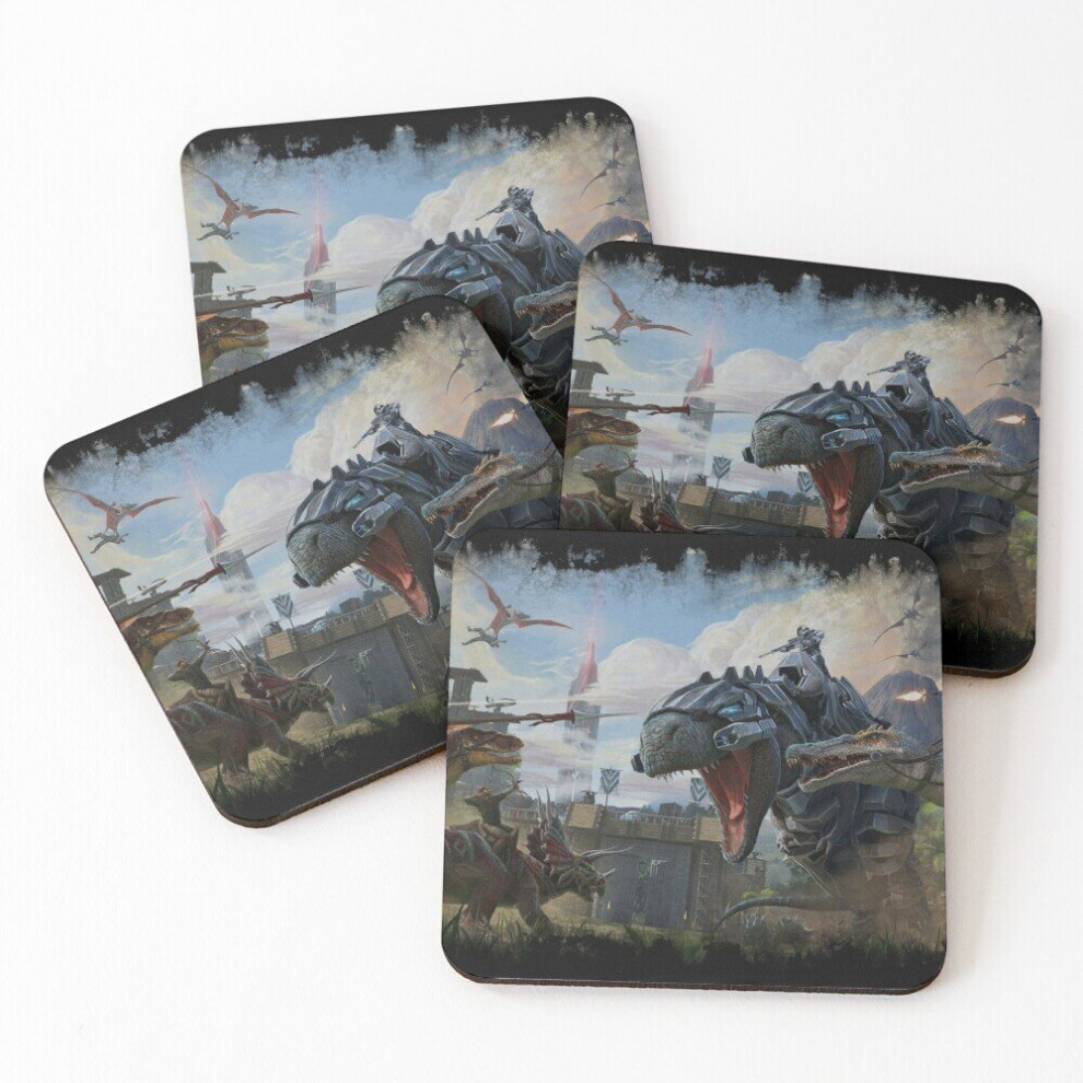 Leather Coasters Ark Survival Evolved Cyber Dinosaur Attack Set of 4 / 4 x 4 inch