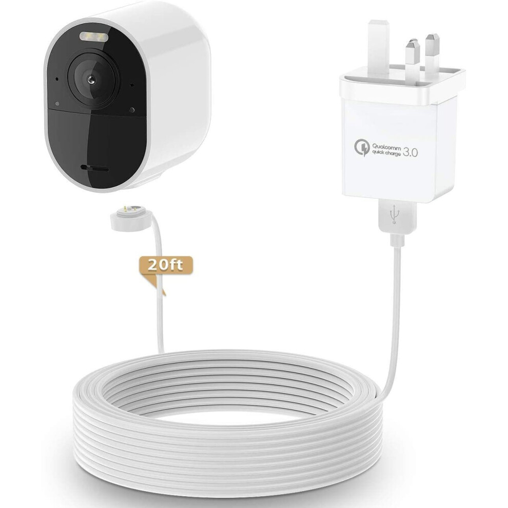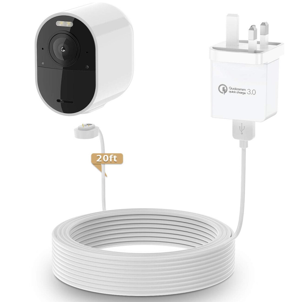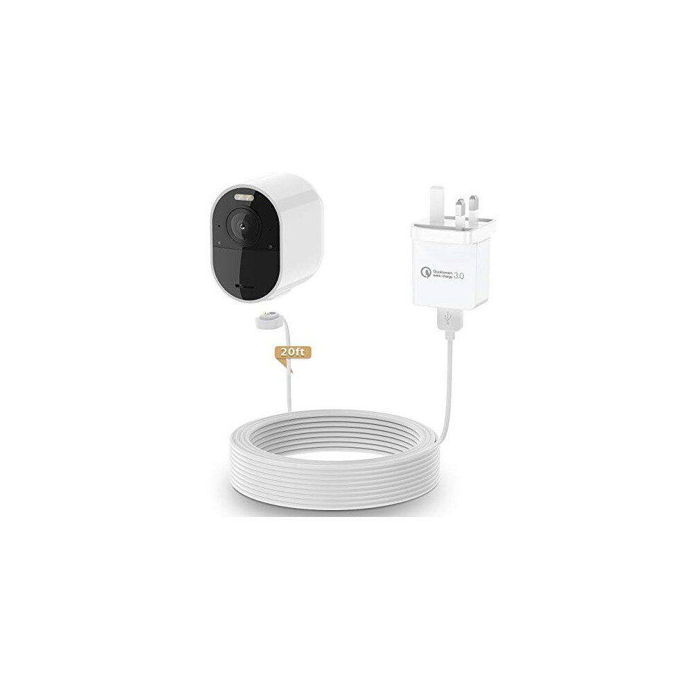 New White 6M/20ft Charging Power Cable Fits For Arlo Pro Arlo Pro 2 Arlo GO W
