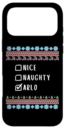 Nice, Naughty, Arlo Ugly Sweater Style Case for iPhone 17 Pro
