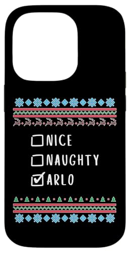 Nice, Naughty, Arlo Ugly Sweater Style Case for iPhone 14 Pro