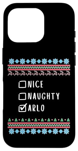 Nice, Naughty, Arlo Ugly Sweater Style Case for iPhone 16 Pro