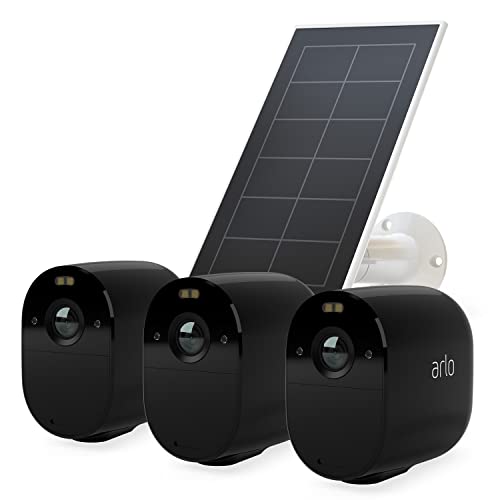 Arlo Total Protection Pack Bundle | Essential Spotlight CCTV and Solar Panel Charger | 3 Camera System & Solar Panel Bundle, black (VMC2330B & VMA3600B)