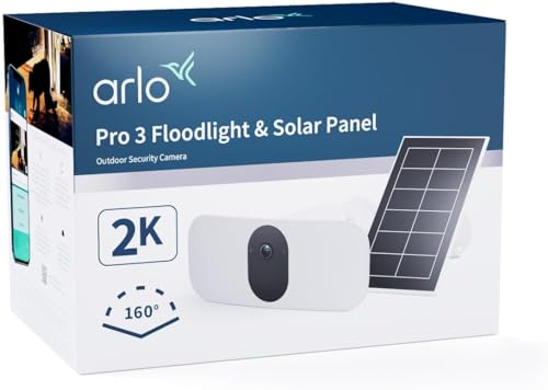 Arlo Floodlight Security Camera Outdoor + Solar Panel, Quality 2K HDR, 160° Wide Angle, Colour Night Vision, Ringing Alarm Siren, Up to 3000 Lumen, 2-Way Talk, Free Trial of Arlo Secure, Black
