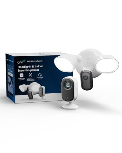 Arlo 2K Essential 3 Indoor & Floodlight Wired Security Cameras, 2K HDR Video Resolution, Motion Detection, Colour Night Vision, Two Way Audio, Arlo Secure Trial Included, 2 Cameras, White