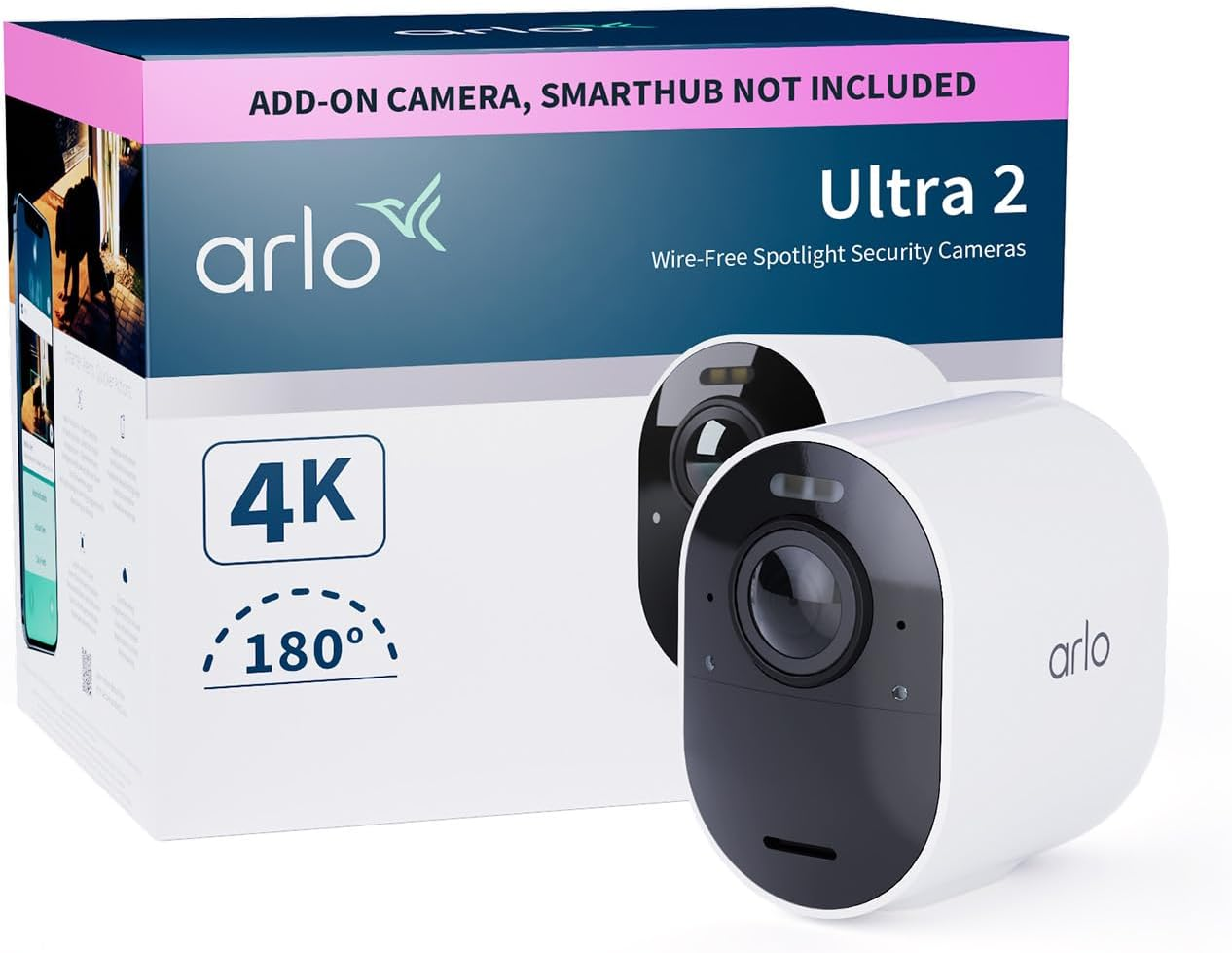 Arlo Ultra 2 Security Camera Outdoor, 4K UHD Add-on Camera, Wireless CCTV, 6-Month Battery, Colour Night Vision, Weatherproof, Bright Spotlight, 2-Wa