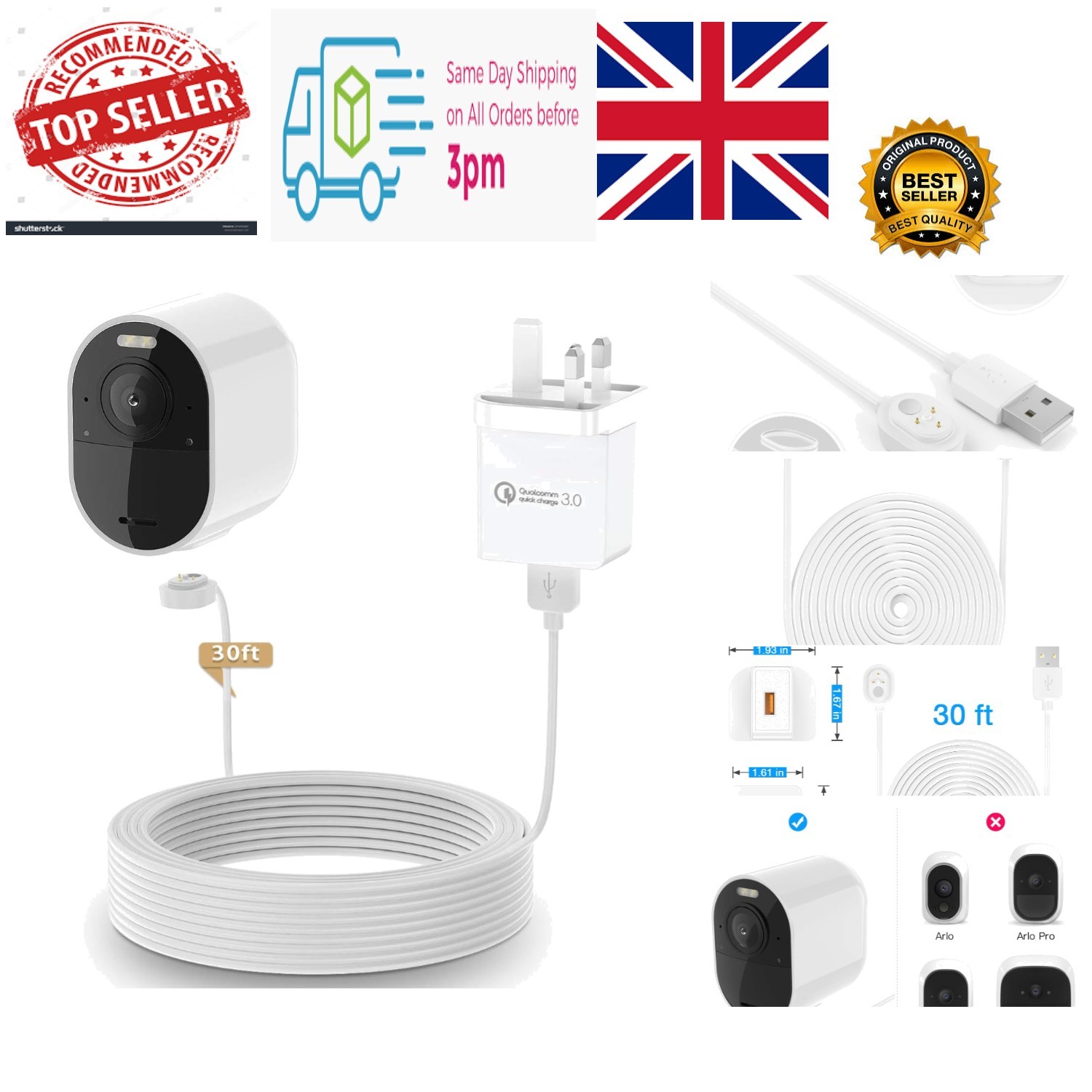 9m Power Cord For Arlo Ultra 4K UHD Magnetic Chanrging Cable Waterproof Charg CT