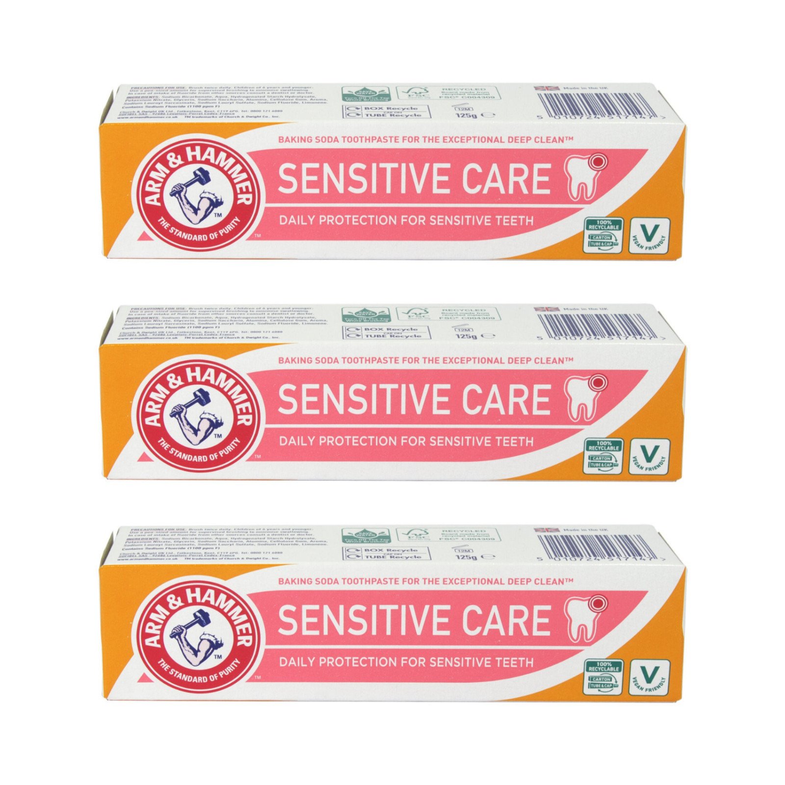 Arm & Hammer Sensitive Care Baking Soda Toothpaste - 3 x 125G - FREE P&P
