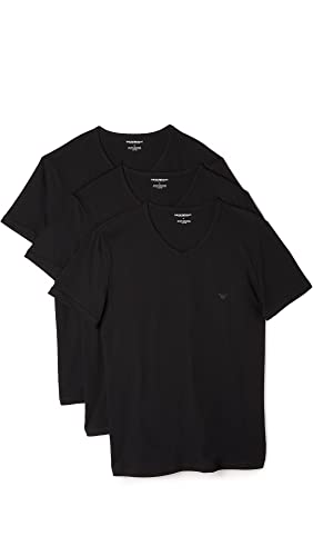 Emporio Armani Men's Emporio Armani Men's Cotton V-neck T-shirt, 3-pack Undershirt, Black, L UK