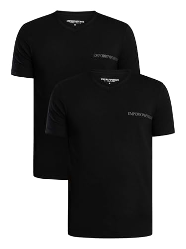 Emporio Armani Man 2 Pack T-Shirt V Neck Slim Fit Black XL, Black/Black, XL