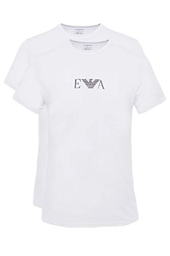 Emporio Armani Underwear Men's 2-Pack T-Shirt Crew Neck Logo, White/White, L