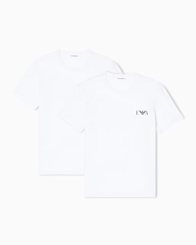 EMPORIO ARMANI Man's Bold Monogram 2-Pack Crew Neck T-Shirt, White, L, Fitted