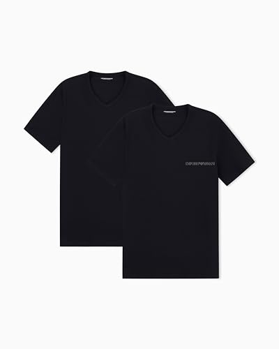 EMPORIO ARMANI Man's Core Logoband 2-Pack V Neck T-Shirt, Black, XXL, Regular
