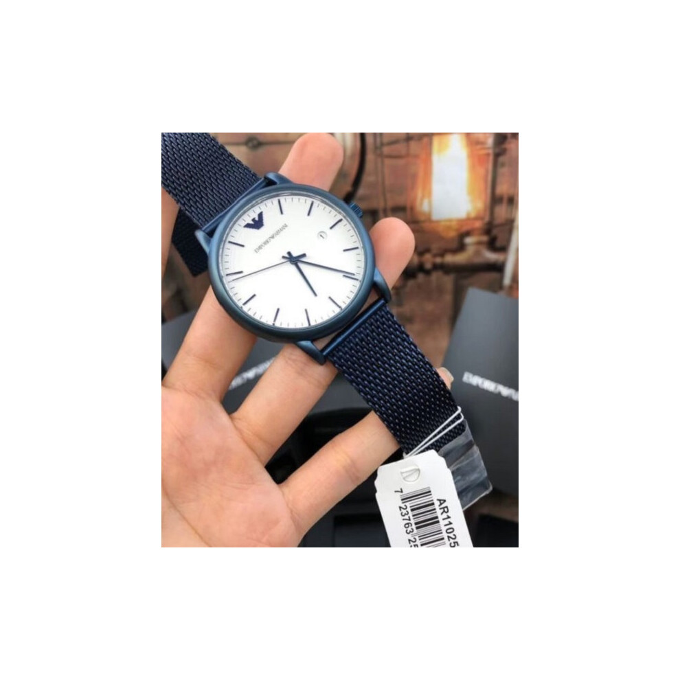 EMPORIO ARMANI AR11025 MEN'S WATCH BLUE MESH BAND WHITE DIAL BLUE CASE
