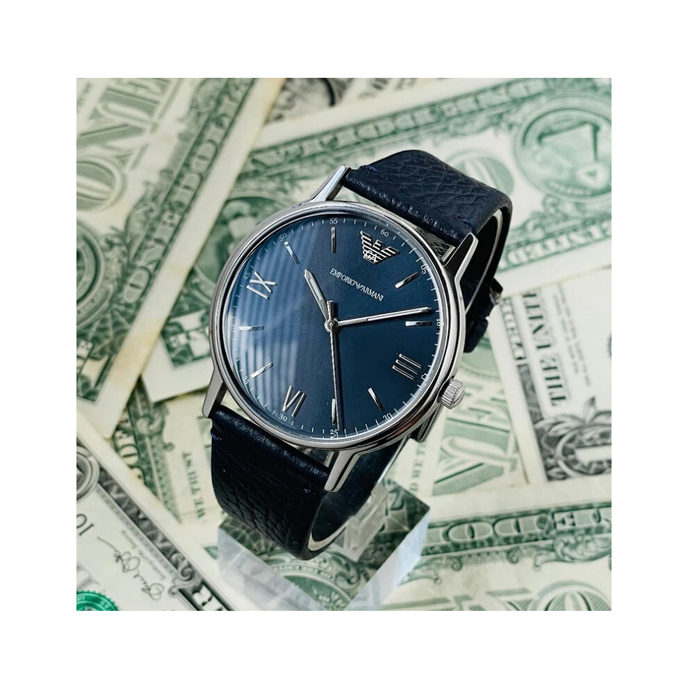 NEW Emporio Armani Men's Blue Dial Leather Band Quartz Watch AR11105 WARRANTY