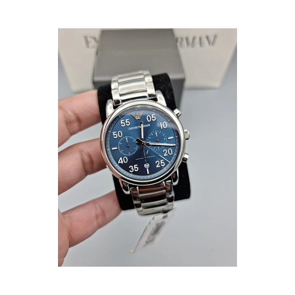 EMPORIO ARMANI AR11541 MEN'S WATCH SILVER STRAP BLUE DIAL SILVER CASE