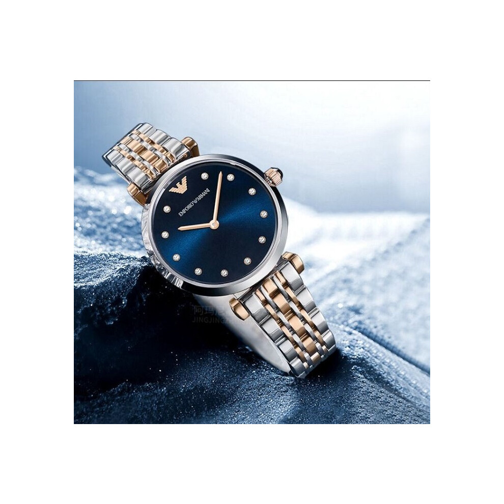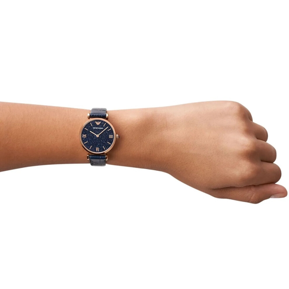 ARMANI AR11469 WOMEN'S WATCH BLUE STRAP SILVER DIAL ROSE GOLD CASE