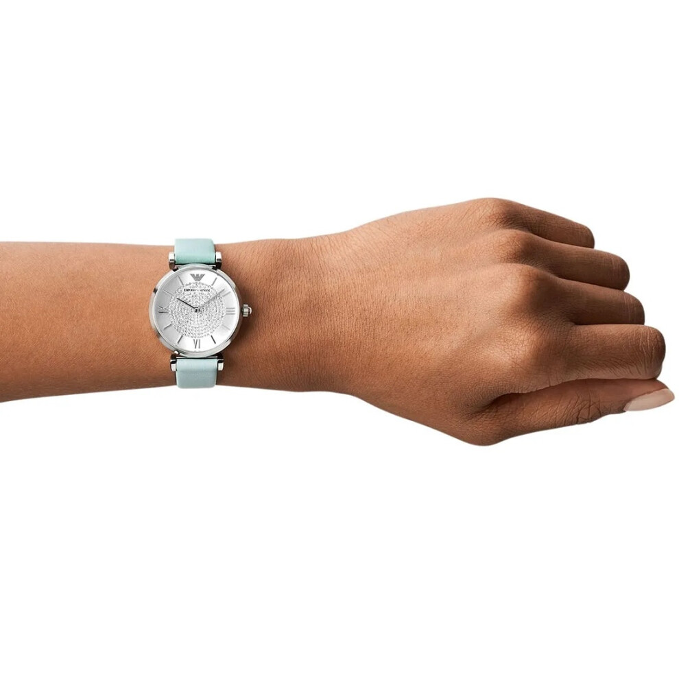 EMPORIO ARMANI AR11443 WOMENS WATCH BLUE STRAP SILVER DIAL SILVER CASE