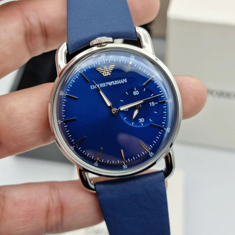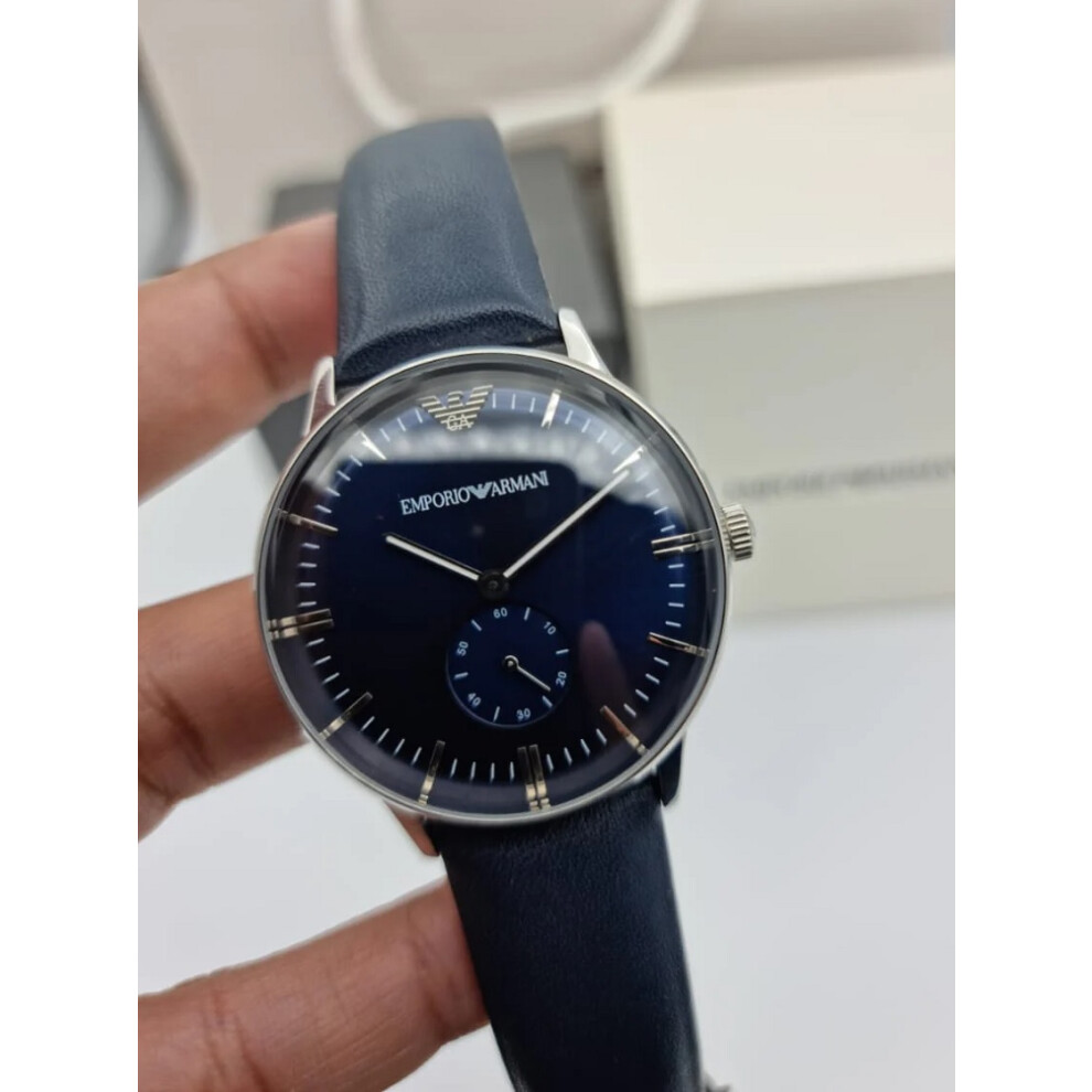 Armani Men's Watch AR1647 Blue Leather Strap Blue Dial Silver Case