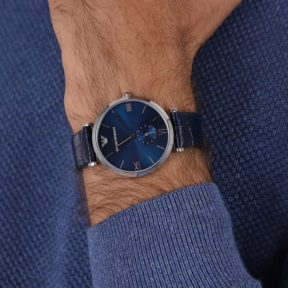 Emporio Armani Men's Watch Blue Strap Blue Dial AR1862 Gold Case