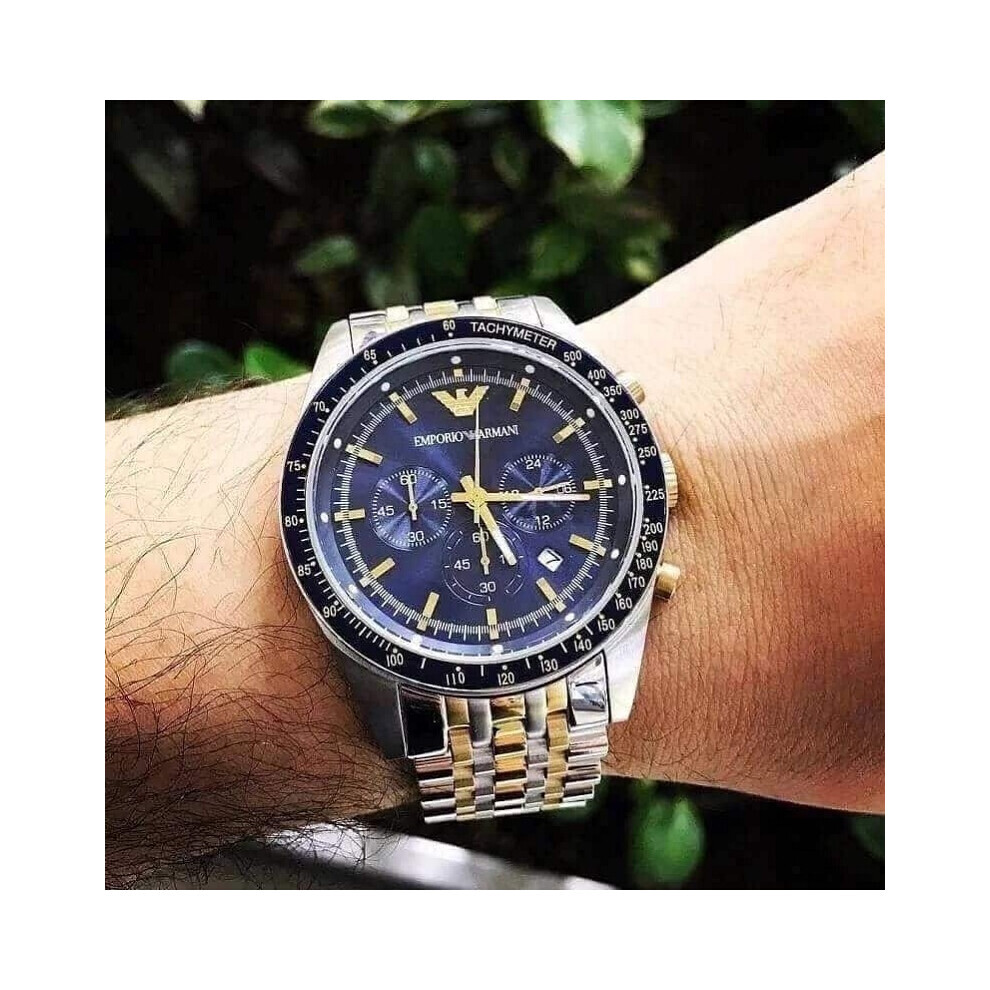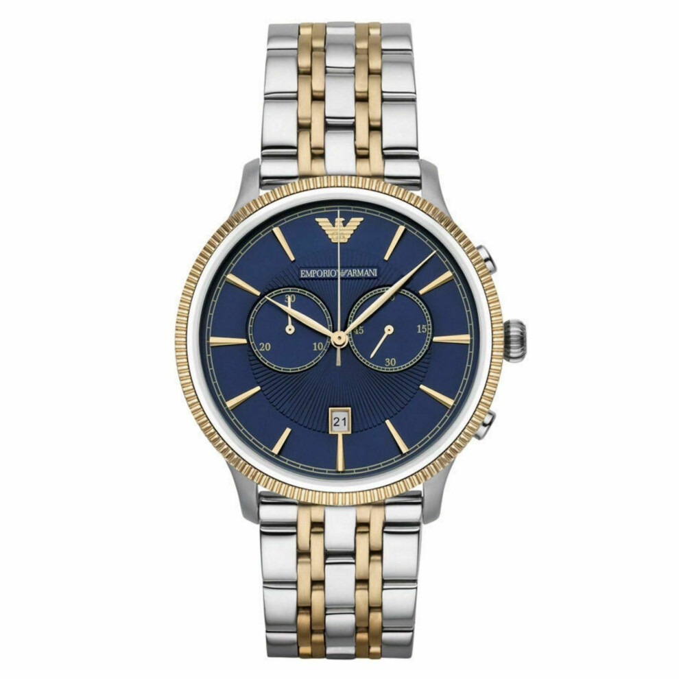 Emporio Armani Classic Men's Chronograph Watch Blue Dial Two-Tone Bracelet AR18147