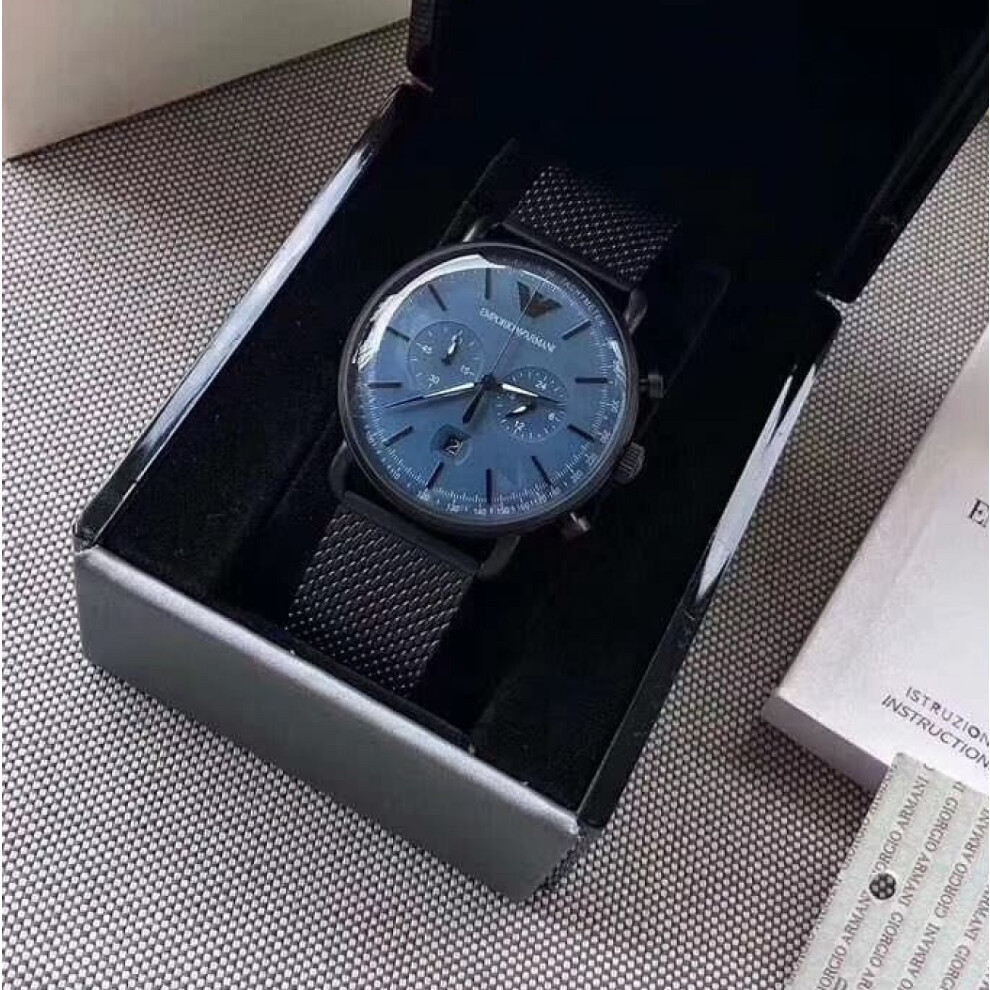 EMPORIO ARMANI AR11201 MEN'S WATCH MESH BAND BLUE DIAL BLACK CASE