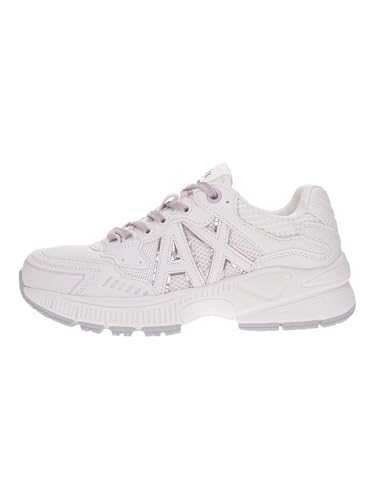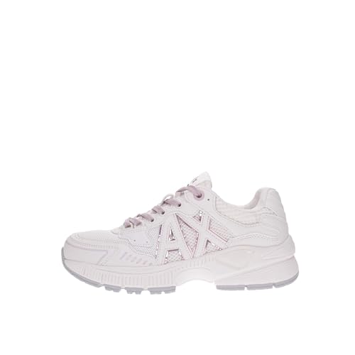 Armani Exchange Women's Speed Low Cut, Mesh Detail, Big Side Logo Trainers, White+Pale, 38.5 EU, White Pale, 5.5 UK