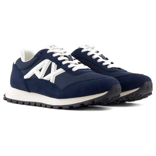 Armani Exchange Men's Essential Drop Mesh Details Trainers, Navy Off, 9 UK