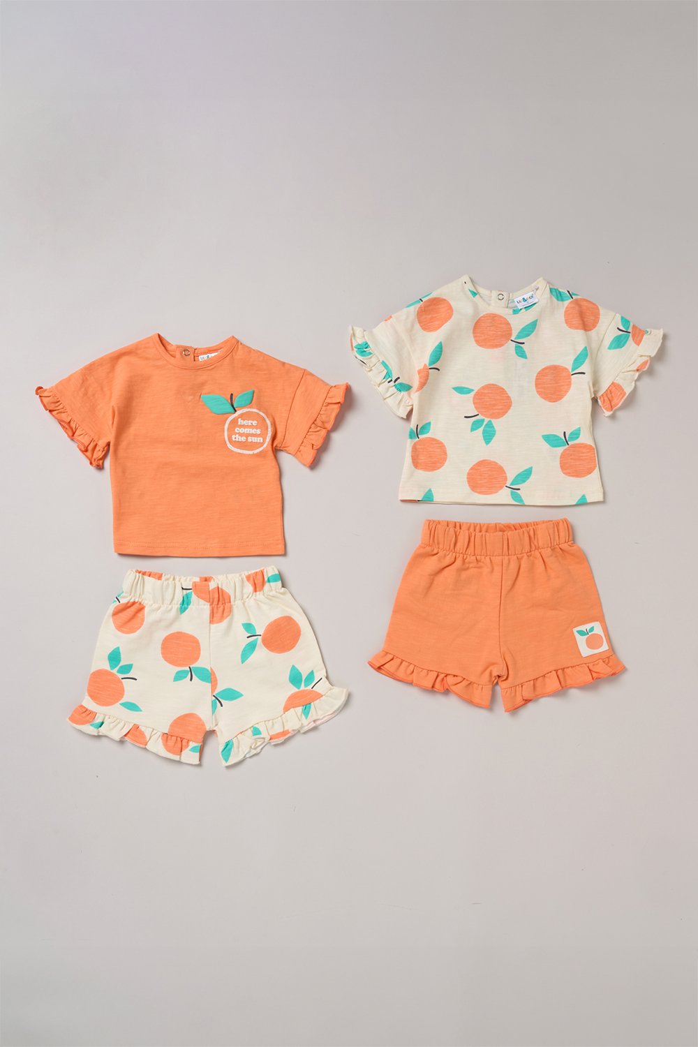 Lily and Jack Girls 4-Piece Mix and Match Printed T-Shirt and Shorts Set - Peach - Size 3Y