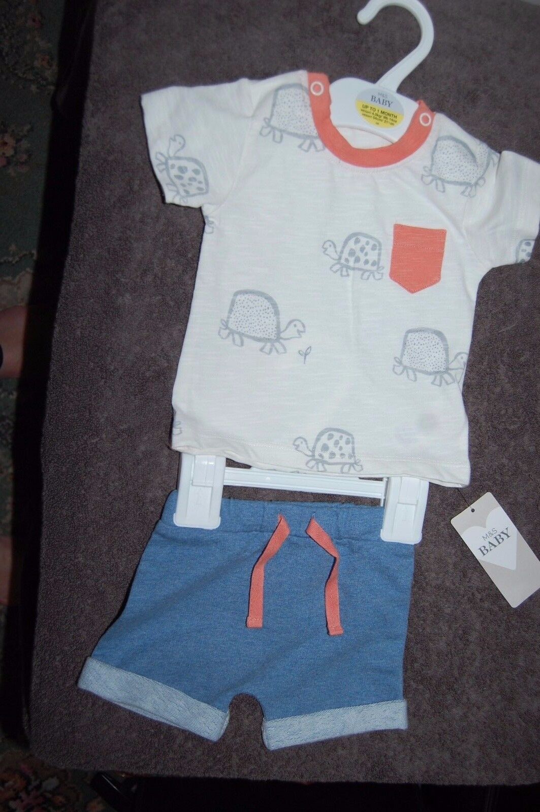 M&S 2 Piece Shorts and T Shirt Set 100% Cotton Age Up to 1 Month BNWT