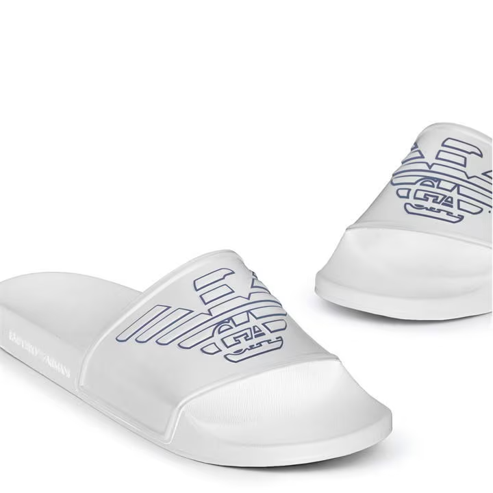 Emporio Armani Bold Eagle Logo Slides Sandal, White+Black, 36