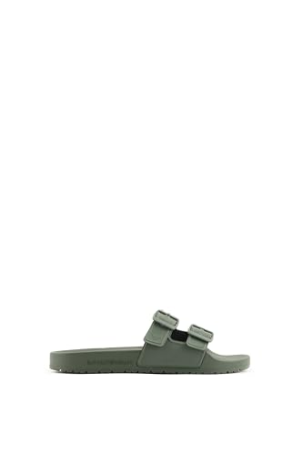 Emporio Armani Double Buckle Slides Sandal, Military+Military, 45
