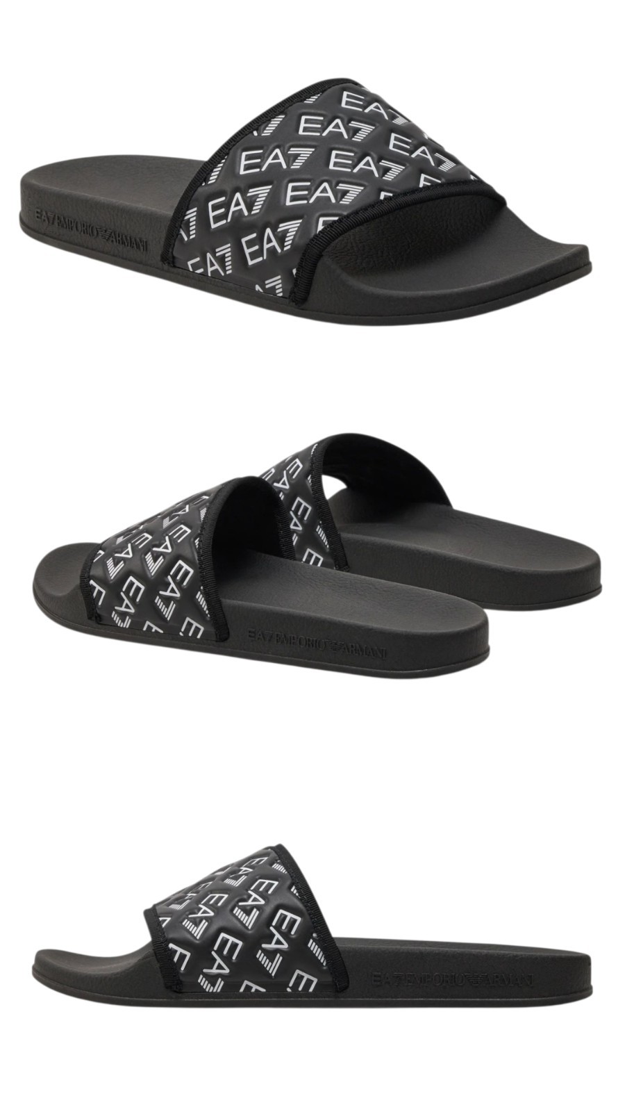 EA7 Emporio Armani All Over Print Slides Black Size Men's UK 9 / EUR 43
