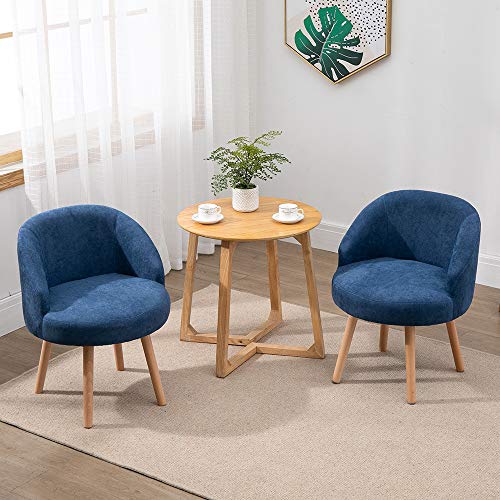 QIHANG-UK Linen Fabric Tub Chairs Set of 2, Lounge Armchair for Small Spaces, Bucket Armchairs for Living Room Cafe, Sofa Side Occasional Chair, Small Bedroom Chairs (Blue)